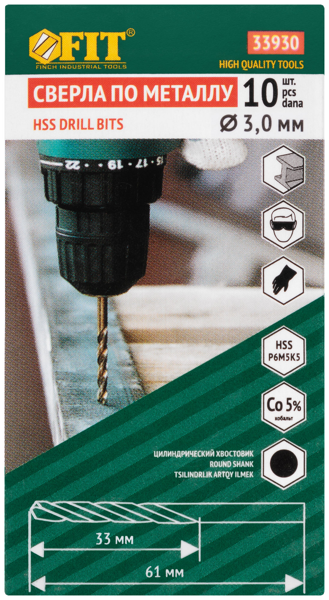 Сверла по металлу HSS с добавкой кобальта 5% Профи 3,0х61 мм (10 шт.)