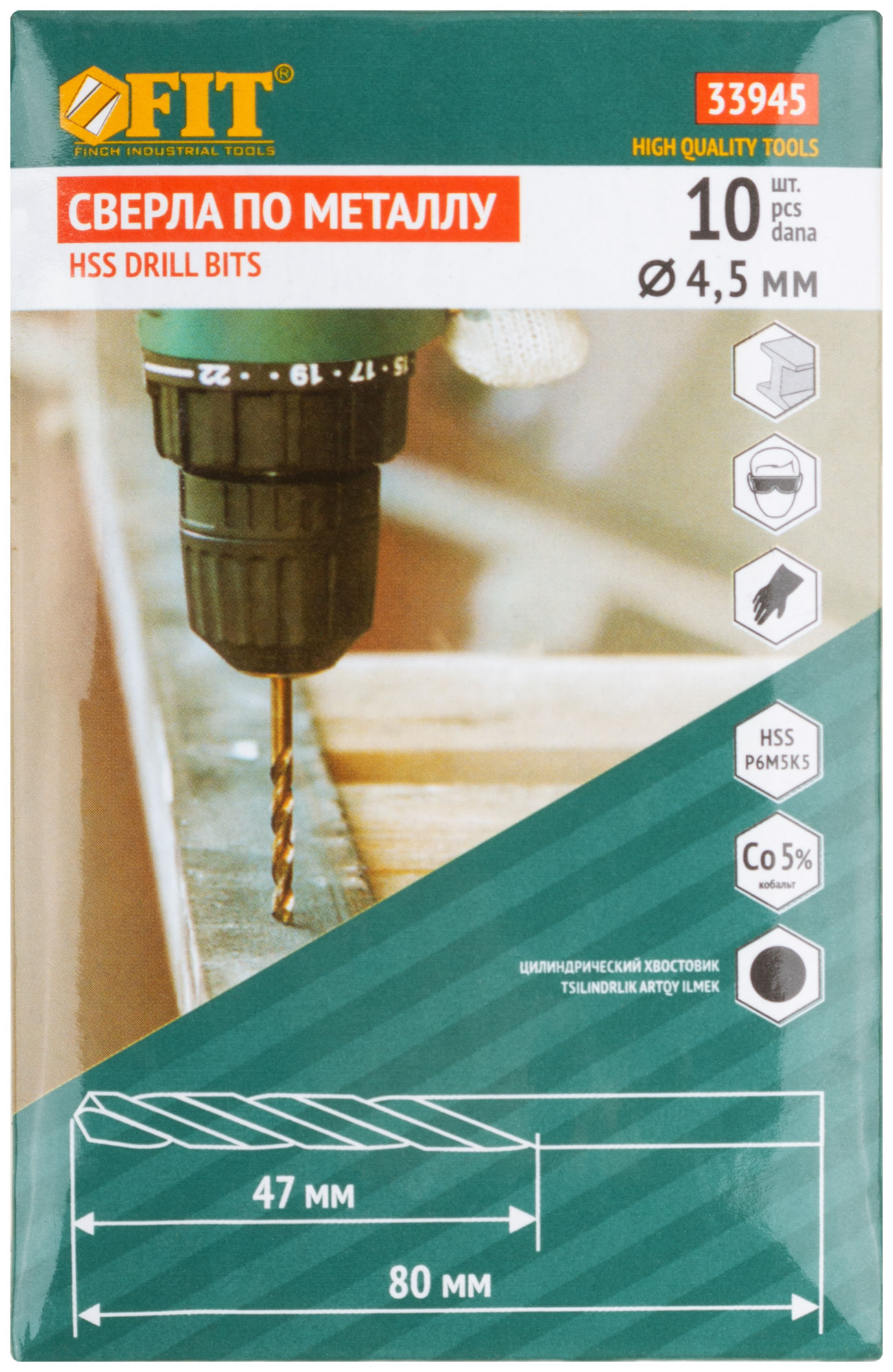 Сверла по металлу HSS с добавкой кобальта 5% Профи 4,5х80 мм (10 шт.)
