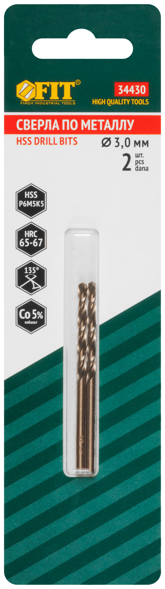 Сверла по металлу HSS с добавкой кобальта 5% Профи в блистере 3,0х61 мм ( 2 шт.)