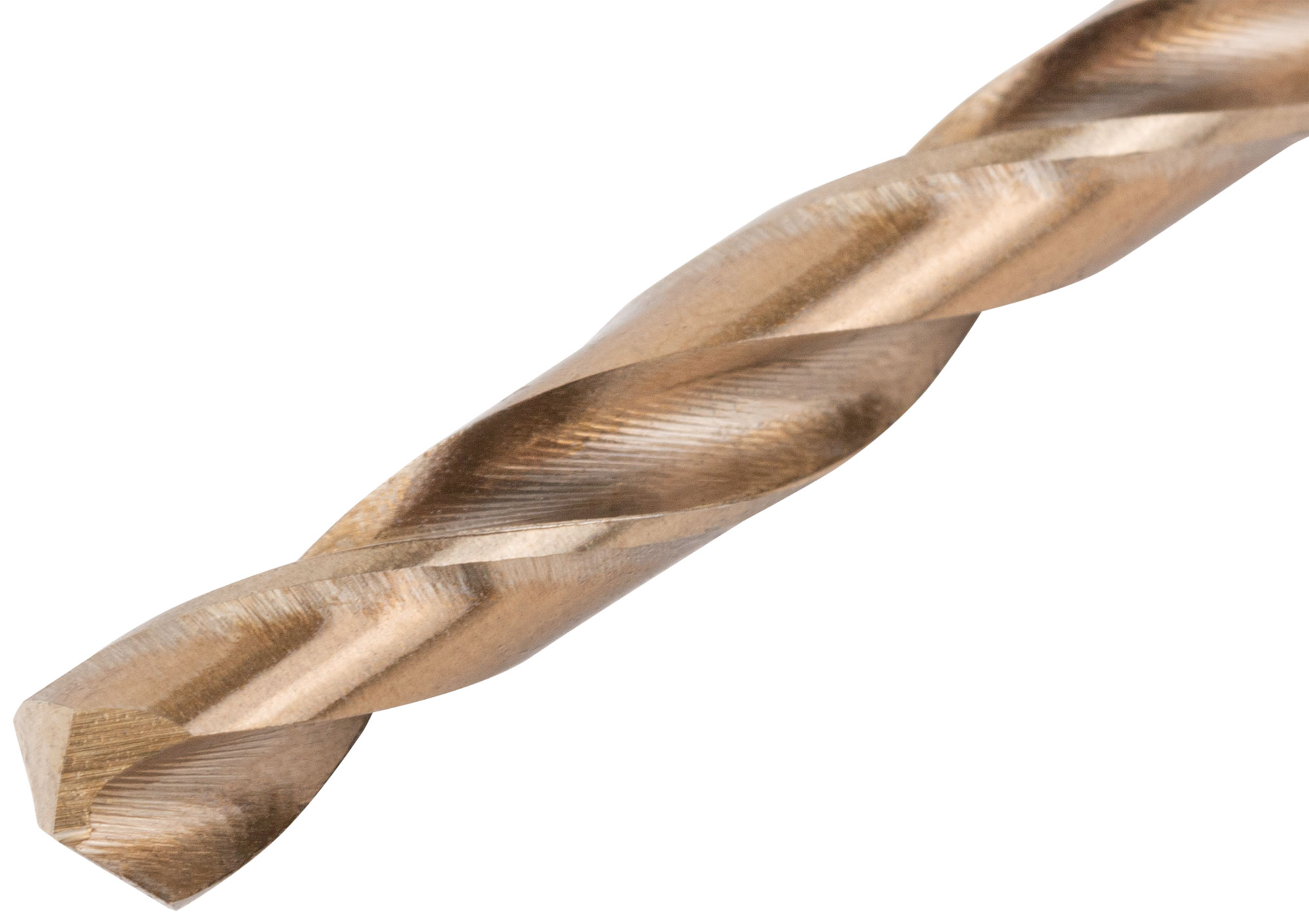 Профи. DIN 338. С 5% добавкой кобальта. Для профессионального использования. Класс точности А1. Угол заточки 135 градусов. Повышенная износостойкость. Вышлифованный профиль. Материал: быстрорежущая (HSS) сталь Р6М5К5. Упаковка: блистер.