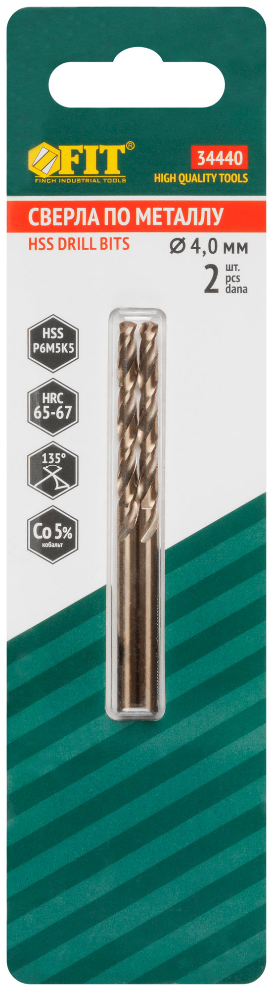 Сверла по металлу HSS с добавкой кобальта 5% Профи в блистере 4,0х75 мм ( 2 шт.)