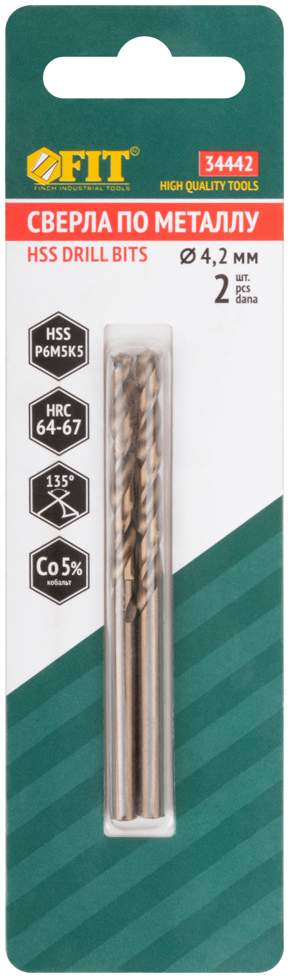 Сверла по металлу HSS с добавкой кобальта 5% Профи в блистере 4,2х75 мм ( 2 шт.)