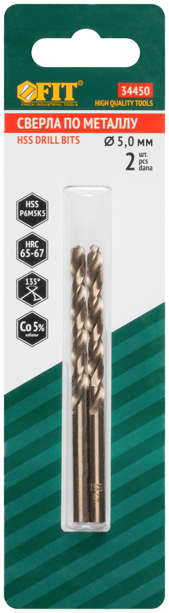 Сверла по металлу HSS с добавкой кобальта 5% Профи в блистере 5,0х86 мм ( 2 шт.)