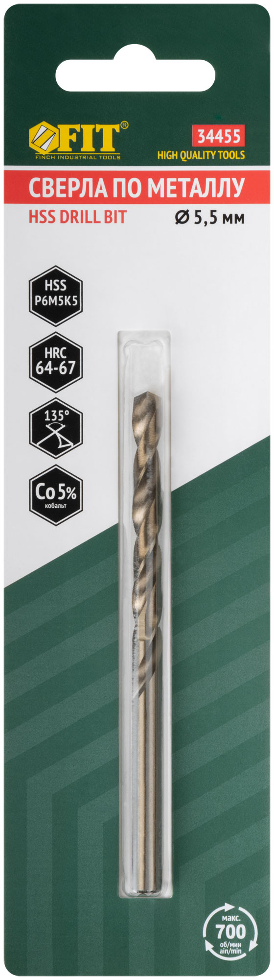 Профи. DIN 338. С 5% добавкой кобальта. Для профессионального использования. Класс точности А1. Угол заточки 135 градусов. Повышенная износостойкость. Вышлифованный профиль. Материал: быстрорежущая (HSS) сталь Р6М5К5. Упаковка: блистер.
