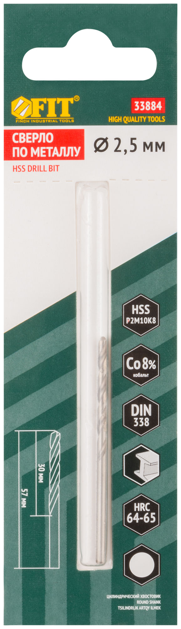 Сверла по металлу HSS с добавкой кобальта 8% Профи ( М42 ) в блистере 2,5х57 мм ( 1 шт.)