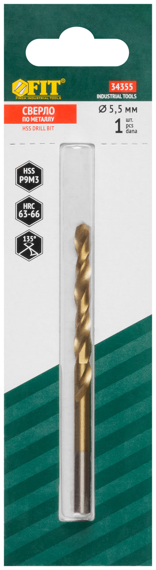 Сверло HSS по металлу, титановое покрытие, в блистере 5,5х93 мм (1 шт.)
