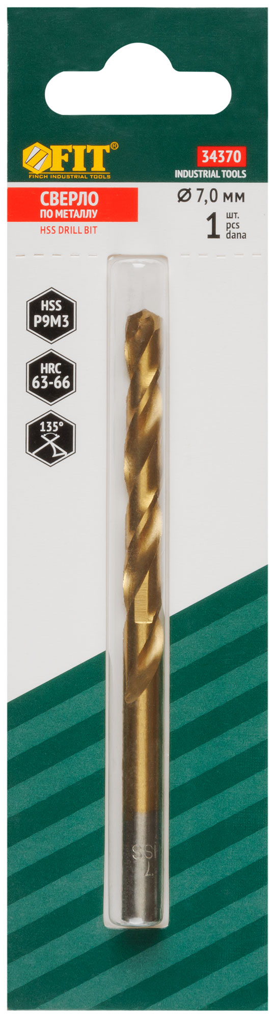 Сверло HSS по металлу, титановое покрытие, в блистере 7,0х109 мм (1 шт.)