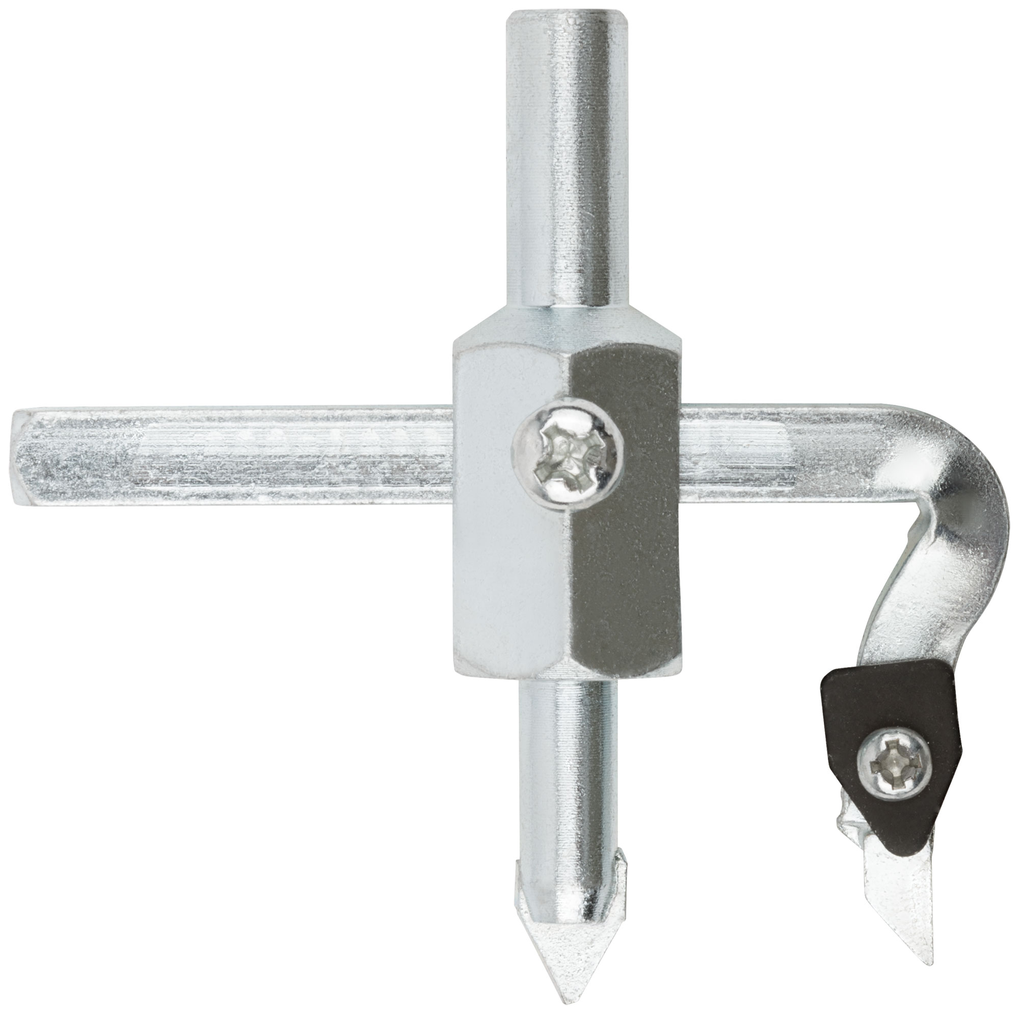 Для вырезания круговых отверстий разного диаметра. Используется с электродрелью и сверлильным станком. Диаметр хвостовика 10 мм. Материал: оцинкованная инструментальная сталь, твердосплавный резец. Упаковка: блистер.