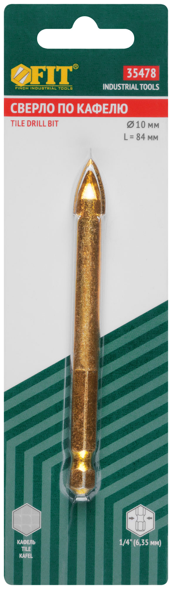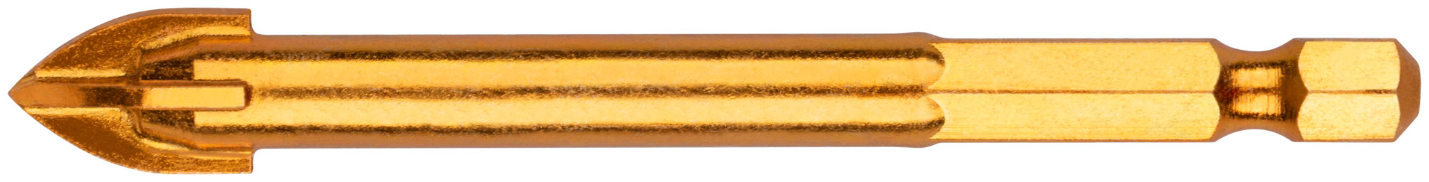 Сверло по кафелю, 4 режущие кромки, титановое покрытие, U-хвостовик под биту 10х84 мм