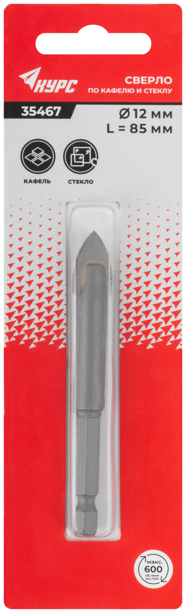 Сверло по кафелю и стеклу, шестигранный U-хвостовик под биту 12х85 мм