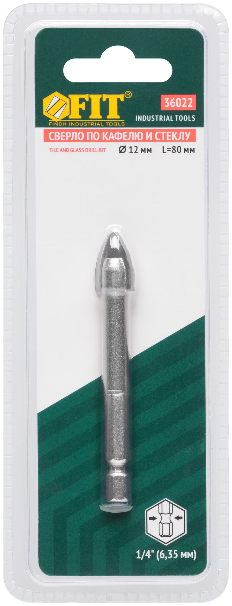 Сверло по кафелю, шестигранный U-хвостовик под биту 12 мм