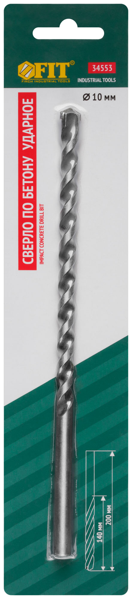 Сверло победитовое ударное, цилиндрический хвостовик (для бетона, кирпича) 10х200 мм