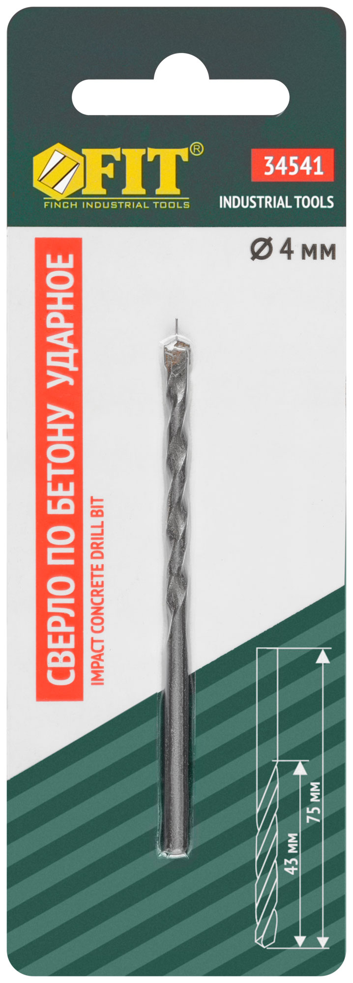 Сверло победитовое ударное, цилиндрический хвостовик (для бетона, кирпича) 4х75 мм
