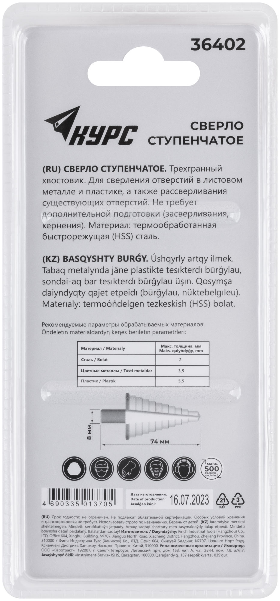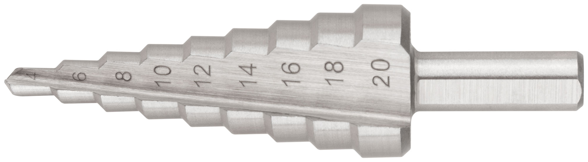 Сверло ступенчатое HSS по металлу, 9 ступеней, 4-20 мм
