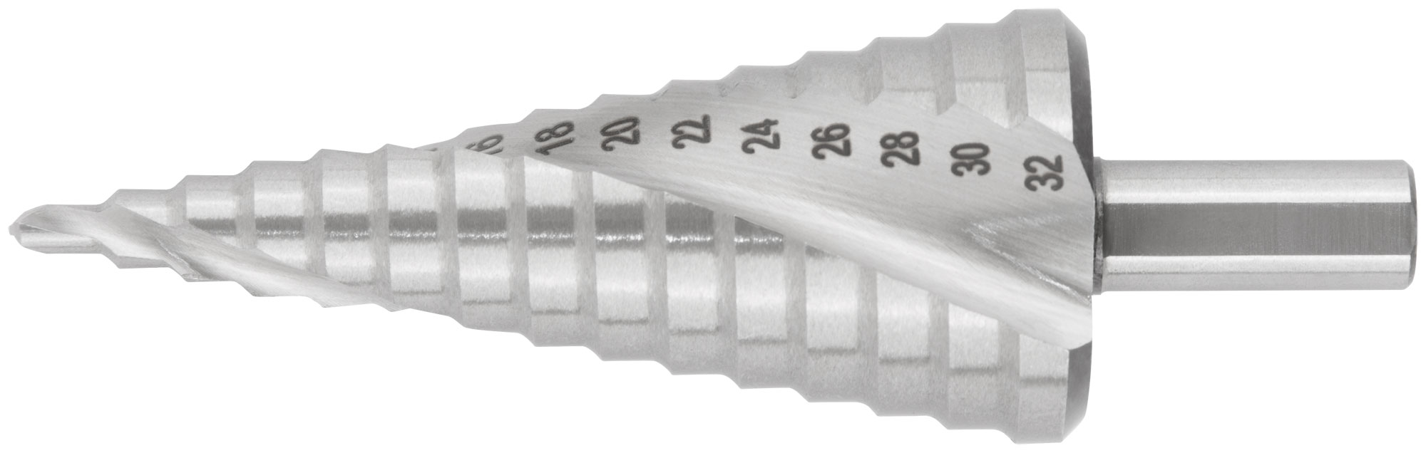 Сверло ступенчатое HSS по металлу, спиральный профиль, 15 ступеней, 4-32 мм
