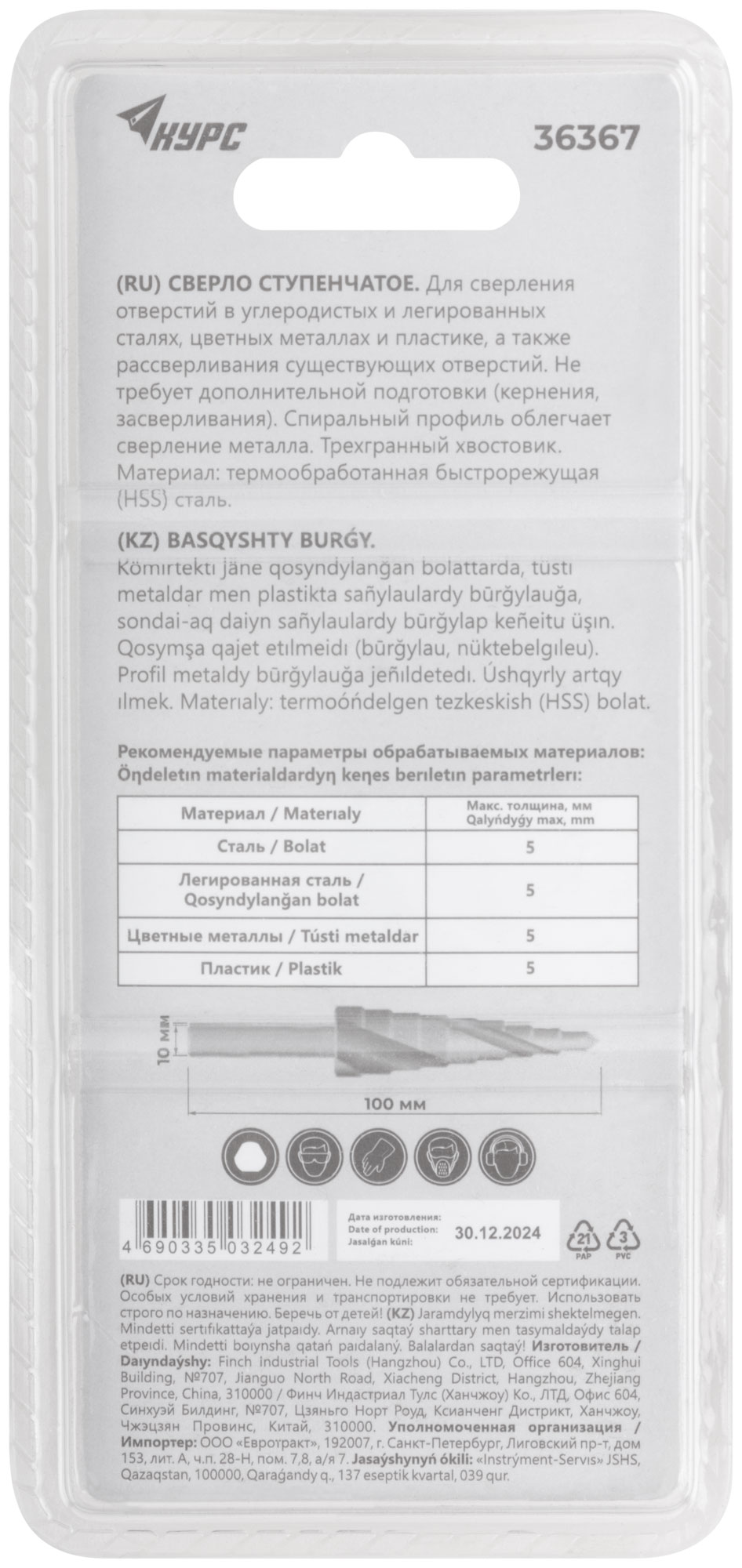 Для сверления и рассверливания отверстий в листовых материалах (сталь, цветные металлы, пластик). Не требует дополнительной подготовки (засверливания, кернения). Спиральный профиль облегчает сверление металла. Трехгранный хвостовик. Материал: полированная быстрорежущая (HSS) сталь. Упаковка: двойной блистер.