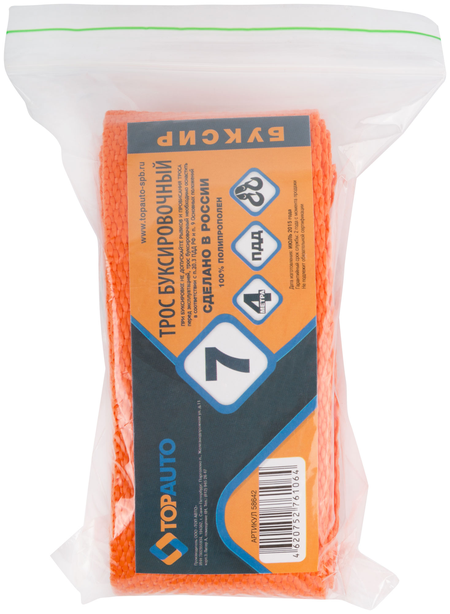 Трос буксировочный "Буксир" 7000 кг, 4 м, 2 крюка ( пакет )