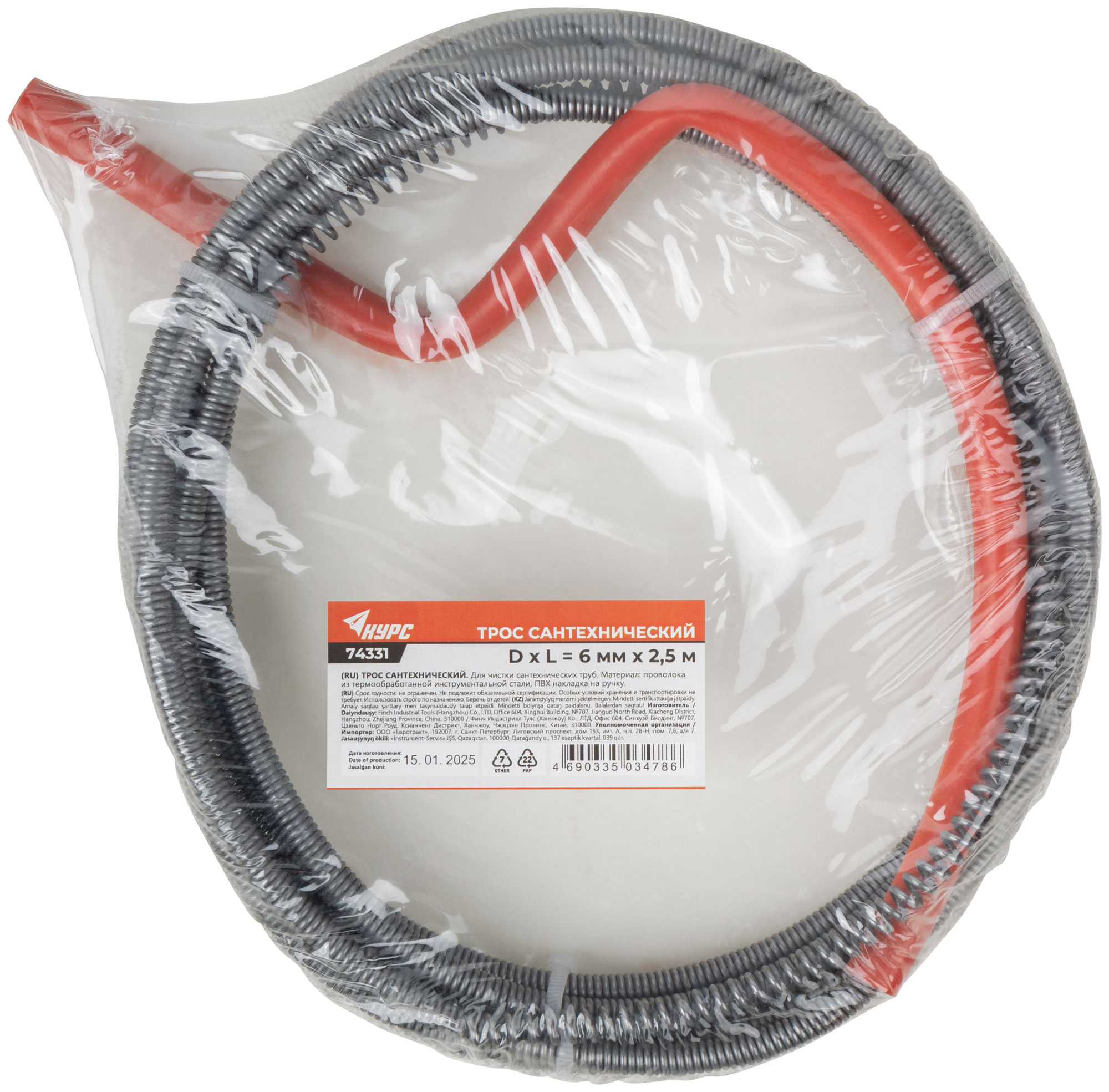 Трос сантехнический для чистки труб 2,5 м x 6,0 мм