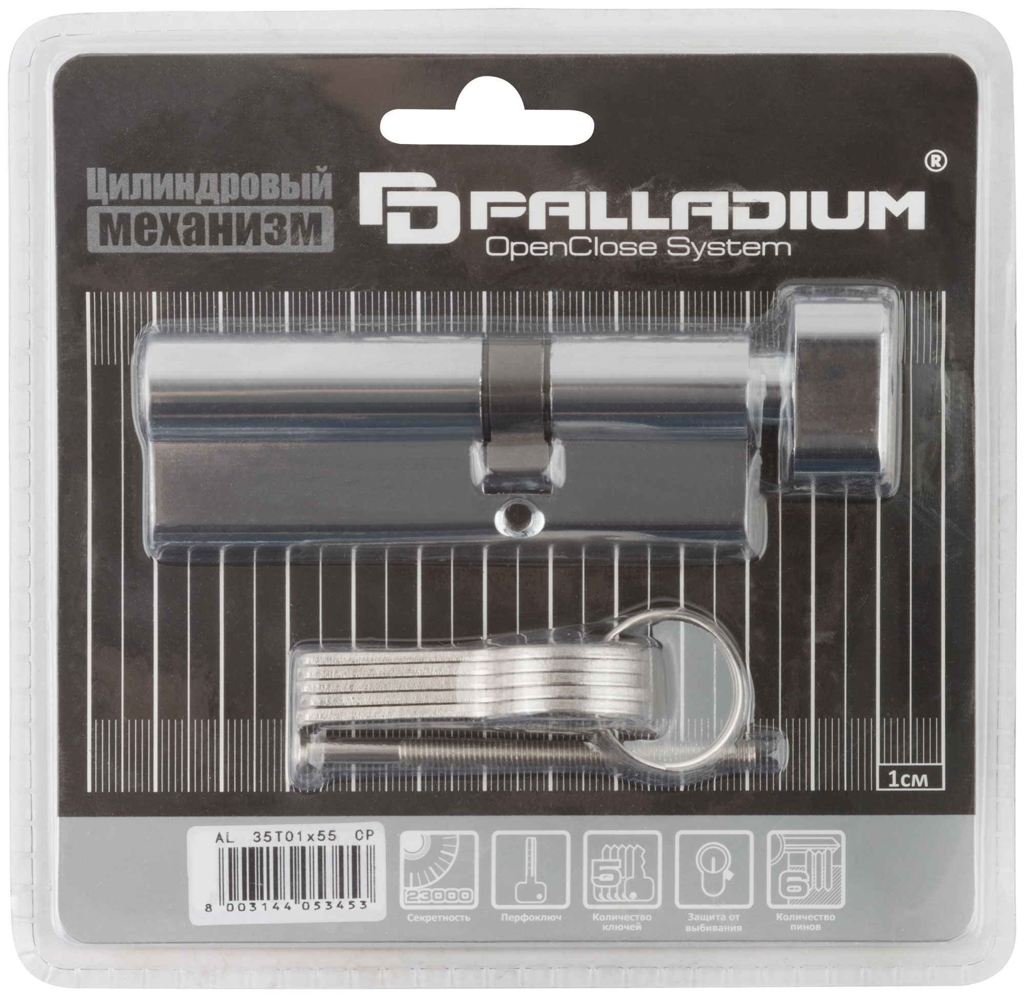 Цилиндровый механизм "PALLADIUM" асимметричный, 90 мм, ключ-завертка, хром