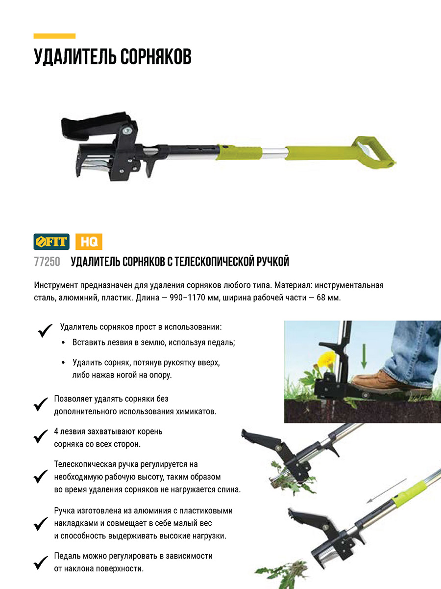 Удалитель сорняков, ширина рабочй части 68 мм, телескопическая ручка 990-1170 мм