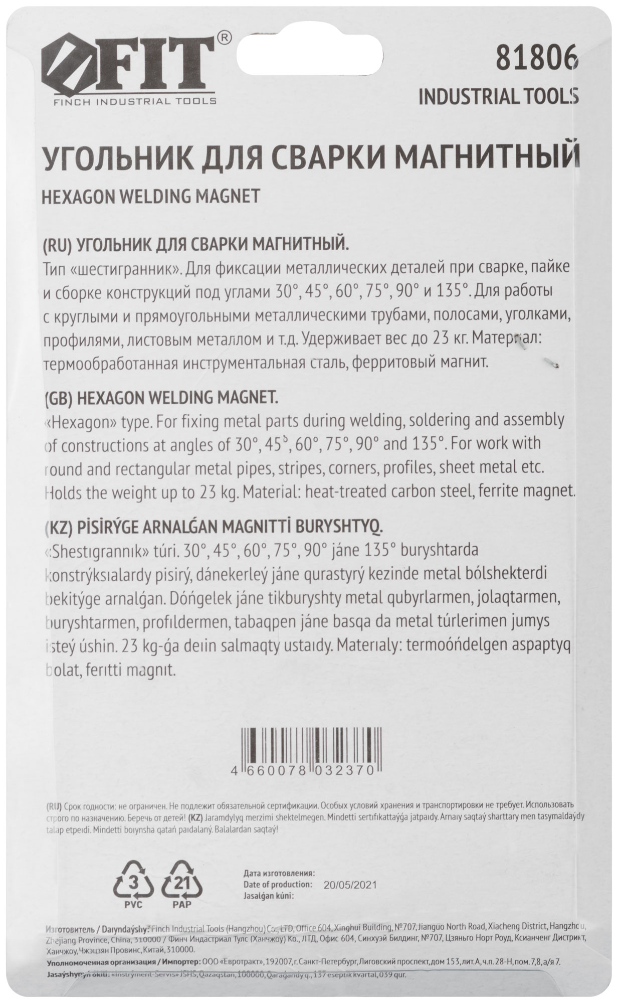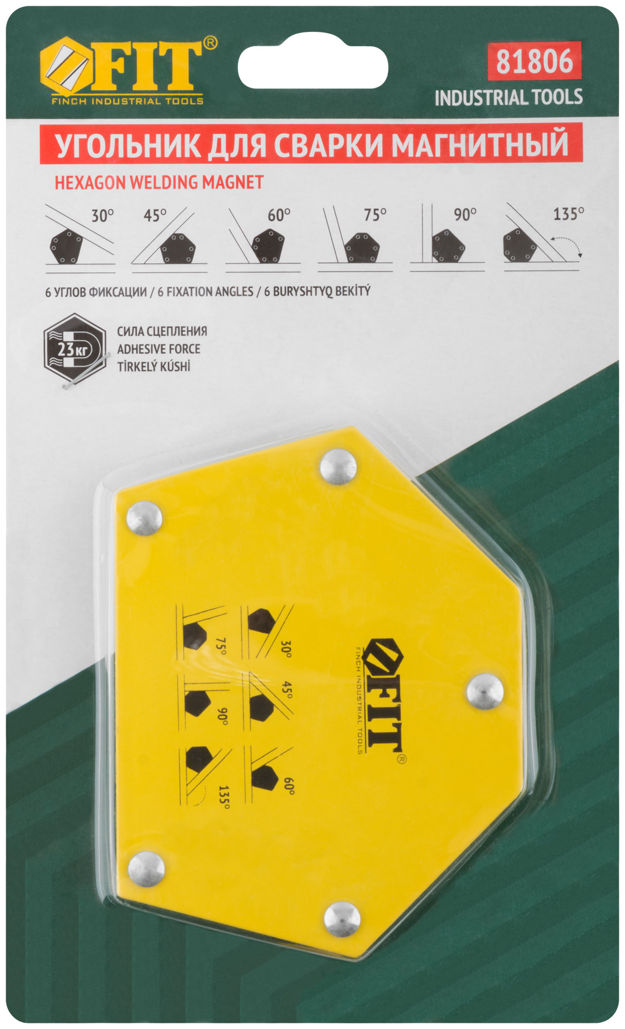 Тип «шестигранник». Для фиксации металлических деталей при сварке, пайке и сборке конструкций под углами 30°, 45°, 60°, 75°, 90°, 135°. Для работы с круглыми и прямоугольными металлическими трубами, полосами, уголками, профилями, листовым металлом и т.д. Материал: инструментальная сталь, ферритовый магнит. Упаковка: блистер.