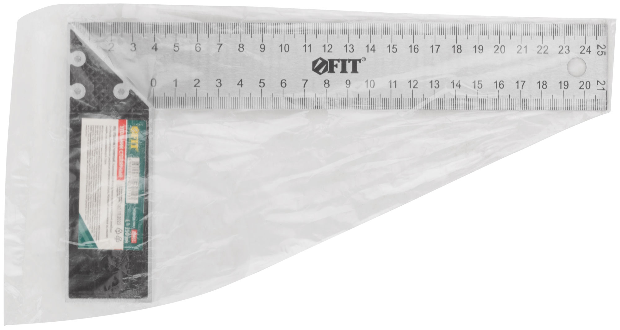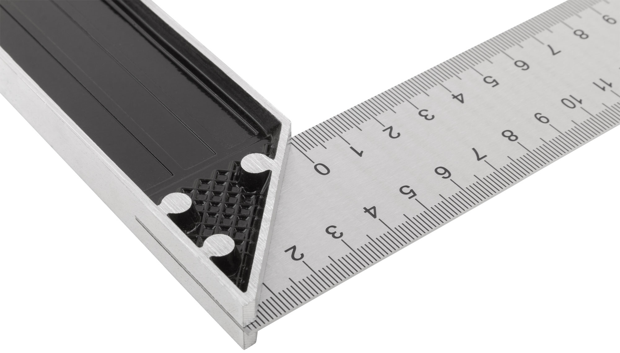 Угольник столярный, рифленая шкала, алюминиевое основание 250 мм