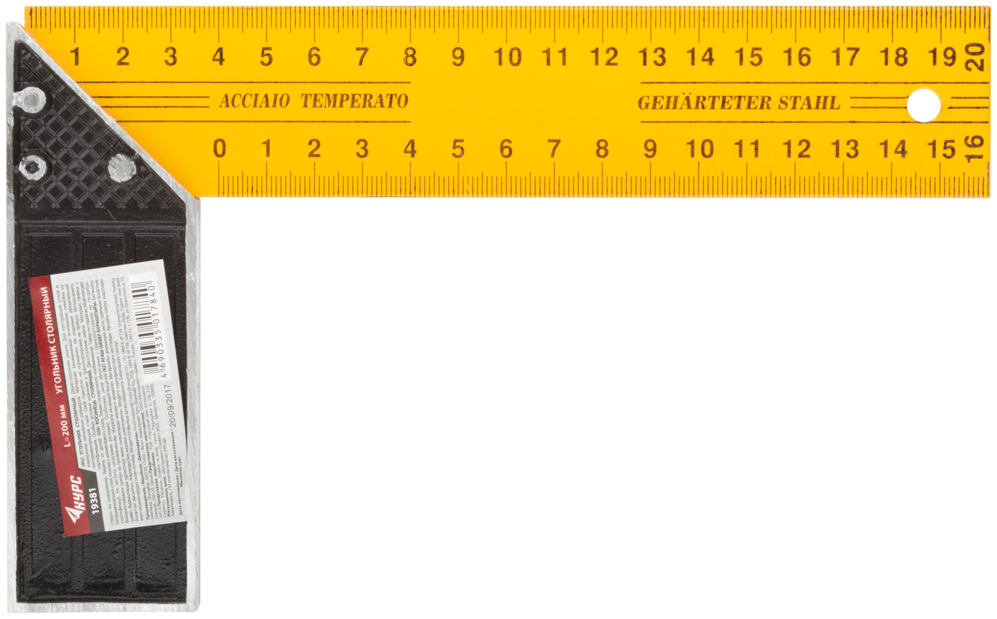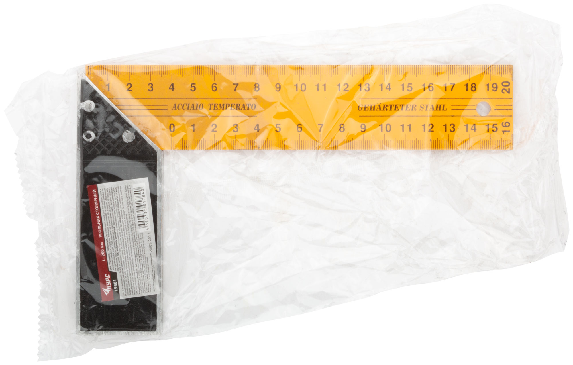 Угольник столярный желтый 200 мм