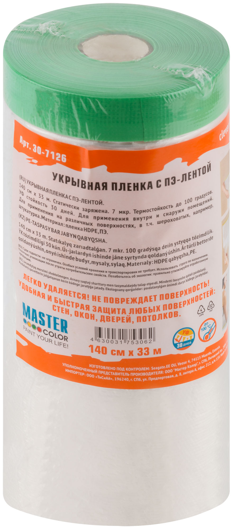 Укрывная пленка с ПЭ-лентой, статически заряжена, 7 мкр., 140 см х 33 м