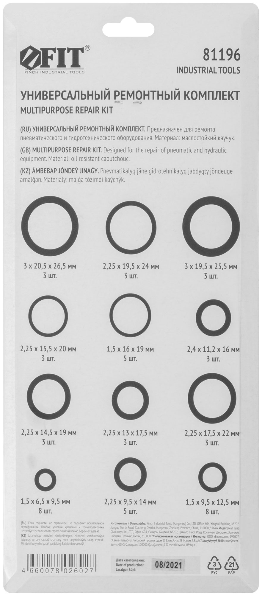 Предназначен для ремонта пневматического оборудования. В наборе: МАТЕРИАЛ: маслостойкий каучук.3x20,5x26,5 мм 3шт 2,25x19,5x24 мм 3шт3x19,5x25,5 мм 3шт 2,25x14,5x19 мм 3шт1,5x16x19 мм 5шт 2,4x11,2x16 мм 3шт2,25x15,5x20 мм 3шт 2,25x13x17,5 мм 3шт2,25x17,5x22 мм 3шт 1,5x6,5x9,5 мм 8шт2,25x9,5x14мм 5шт 1,5x9,5x12,5 мм 8шт