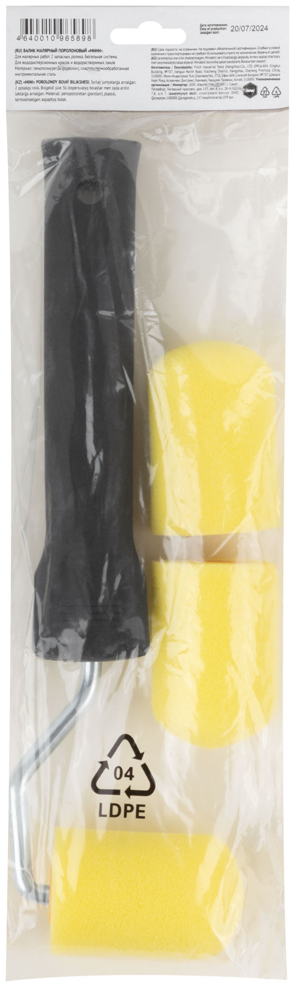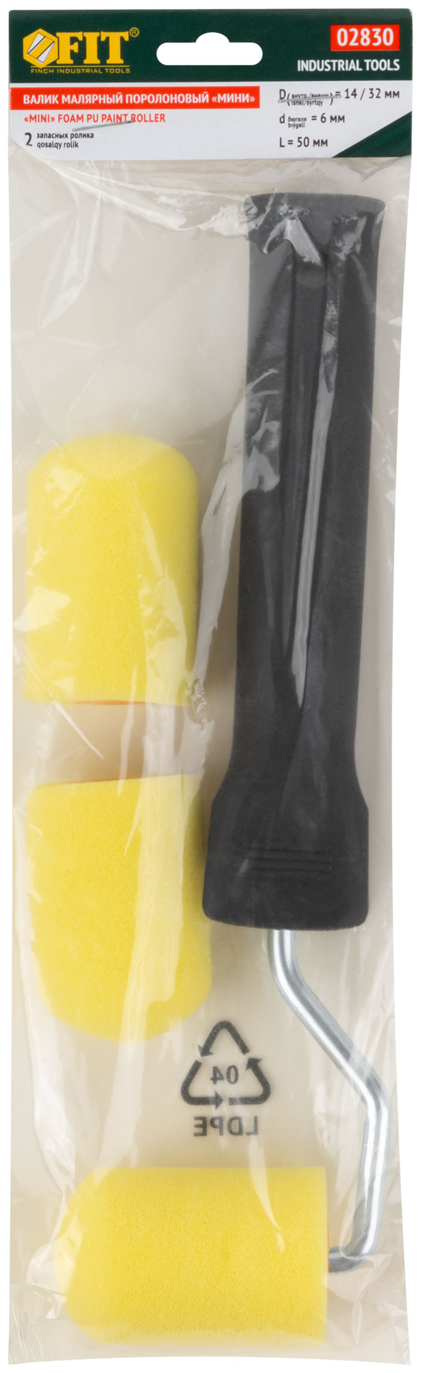 Валик поролоновый желтый с ручкой "мини" 50 мм + 2 сменных ролика