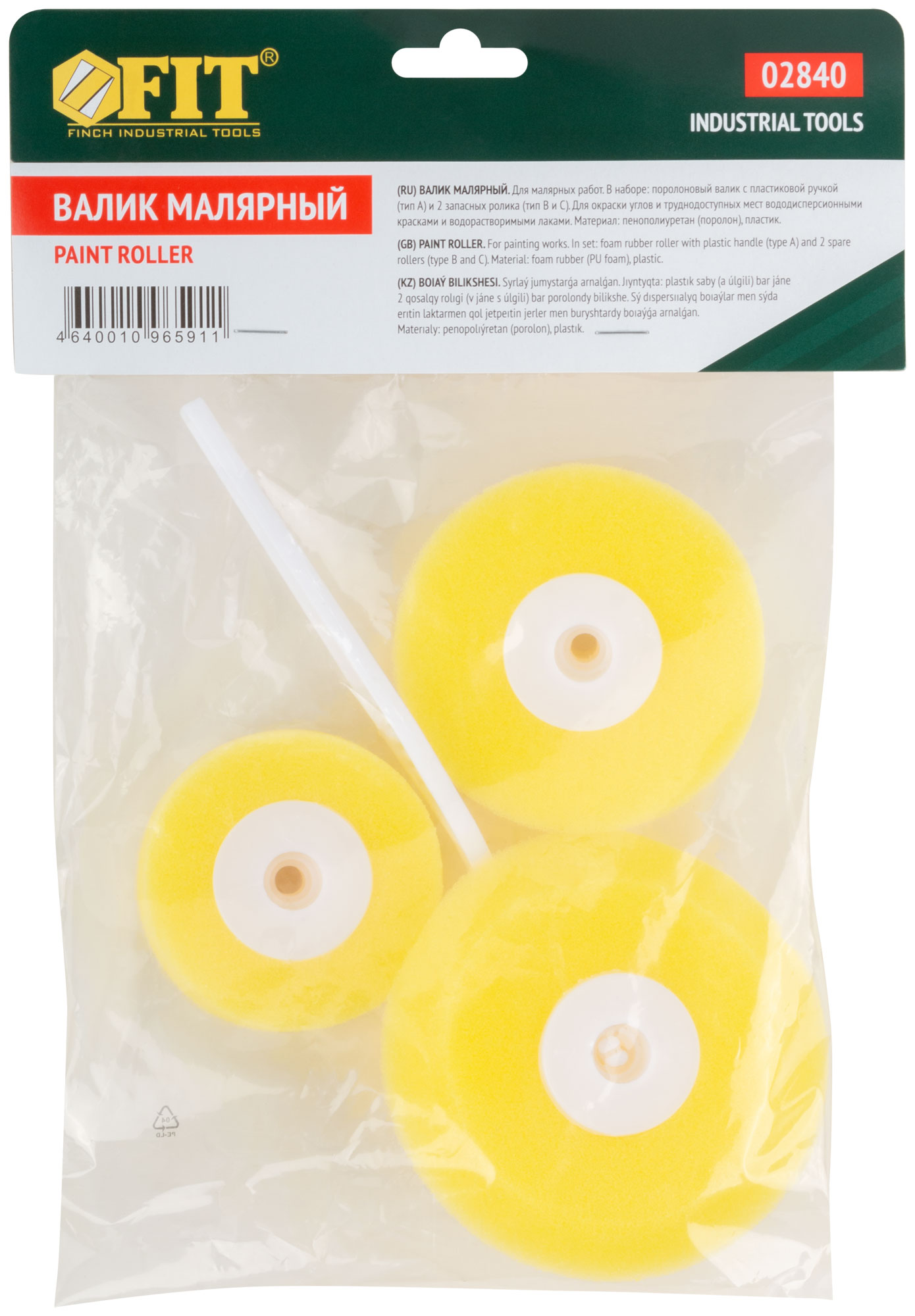 Валик поролоновый желтый угловой, набор 3 шт.