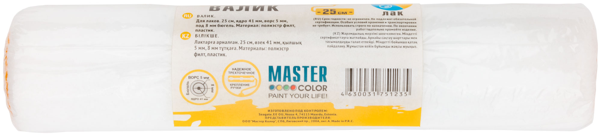 D 40/50 мм. Высота ворса 5 мм. Система трехточечного крепления ручки, для бюгеля 8 мм. Специальный, стабилизированный тканный полиэстер филт. Обеспечивает уменьшение пузырьков на поверхности. Не ворсит. Используется для всех типов лаков. Для гладких поверхностей. Материал: шубка из полиэстера филт.