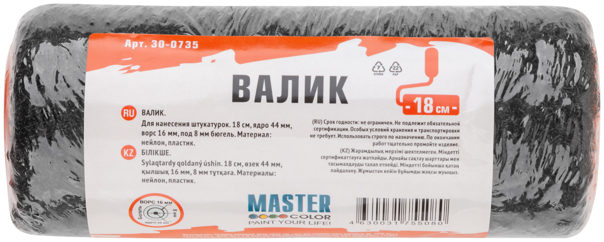 Валик для нанесения шпаклёвки. D 44/80 мм, высота ворса 18 мм, под 8 мм бюгель. Профессиональный валик для ровного ручного нанесение шпатлёвки с наименьшим усилием. Позволяет в несколько раз ускорить процесс нанесения материала на стены и потолок. Не крошится и не оставляет лишних следов на покрытии. Устойчивая структура ворса. Отличное впитывание и распределение наносимого материала. Рабочая поверхность не истирается при работе и легко чистится после использования. Может использоваться для нанесения всех видов готовых паст (шпатлевок), таких как Promix, Semin, Knauf, Vetonit, Danogips, Terraco, большинства декоративных штукатурок и покрытий. Материал шубки: нейлон, полиэстер.