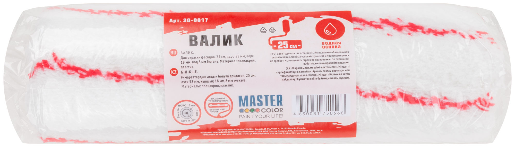 Валик, ядро 58 мм, полиакрил, ворс 18 мм, под 8 мм ручку, 250 мм