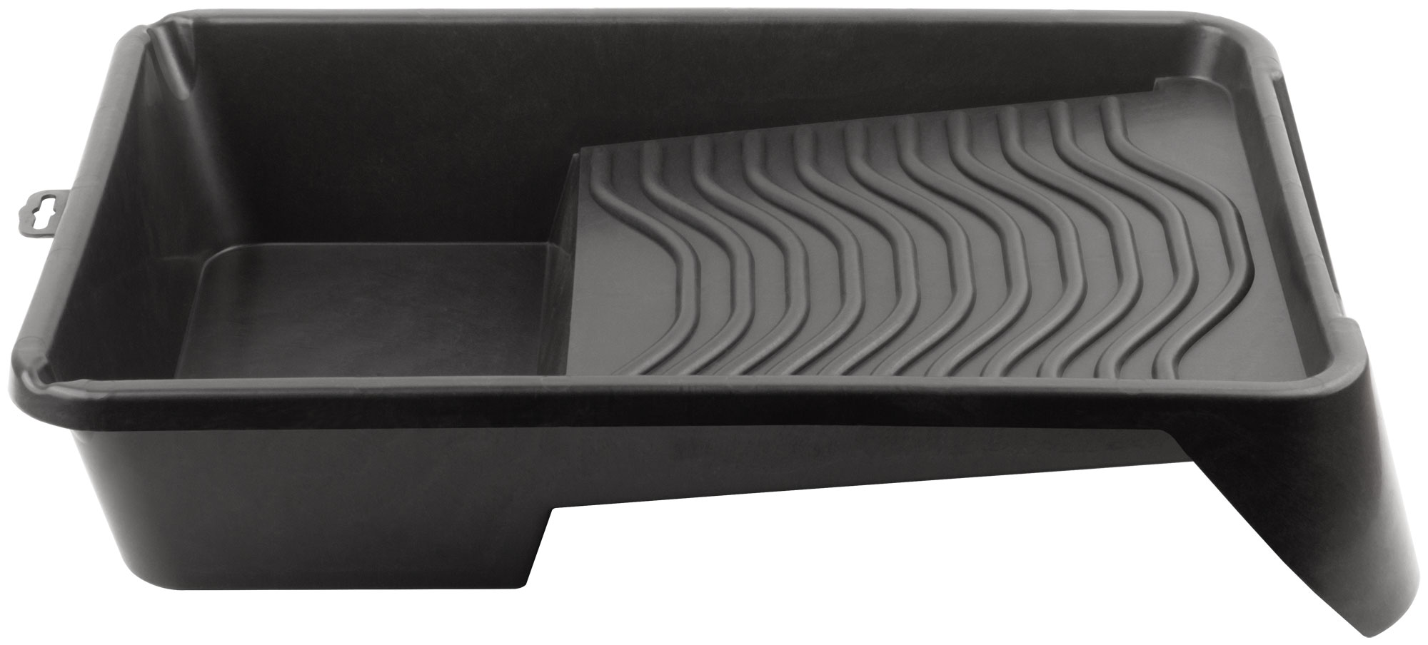 Для равномерного нанесения краски на валик. Легко очищается от старой краски. Конструкция включает в себя наличие «педали», для возможности удерживания ванночки ногой и предотвращении её передвижения во время раскатки валика. Материал: пластик.