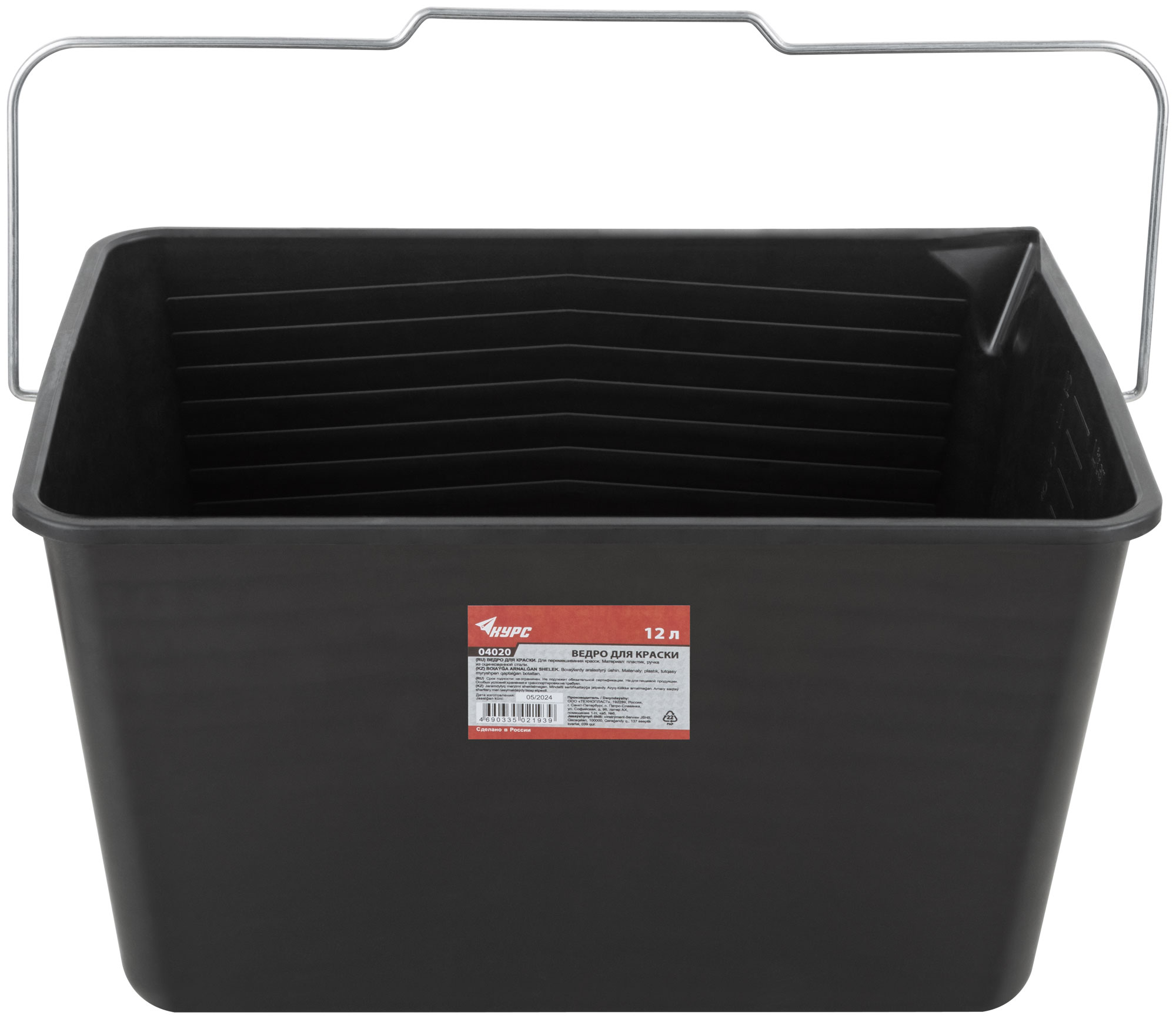 Ведро для краски, металлическая ручка 12 л черное