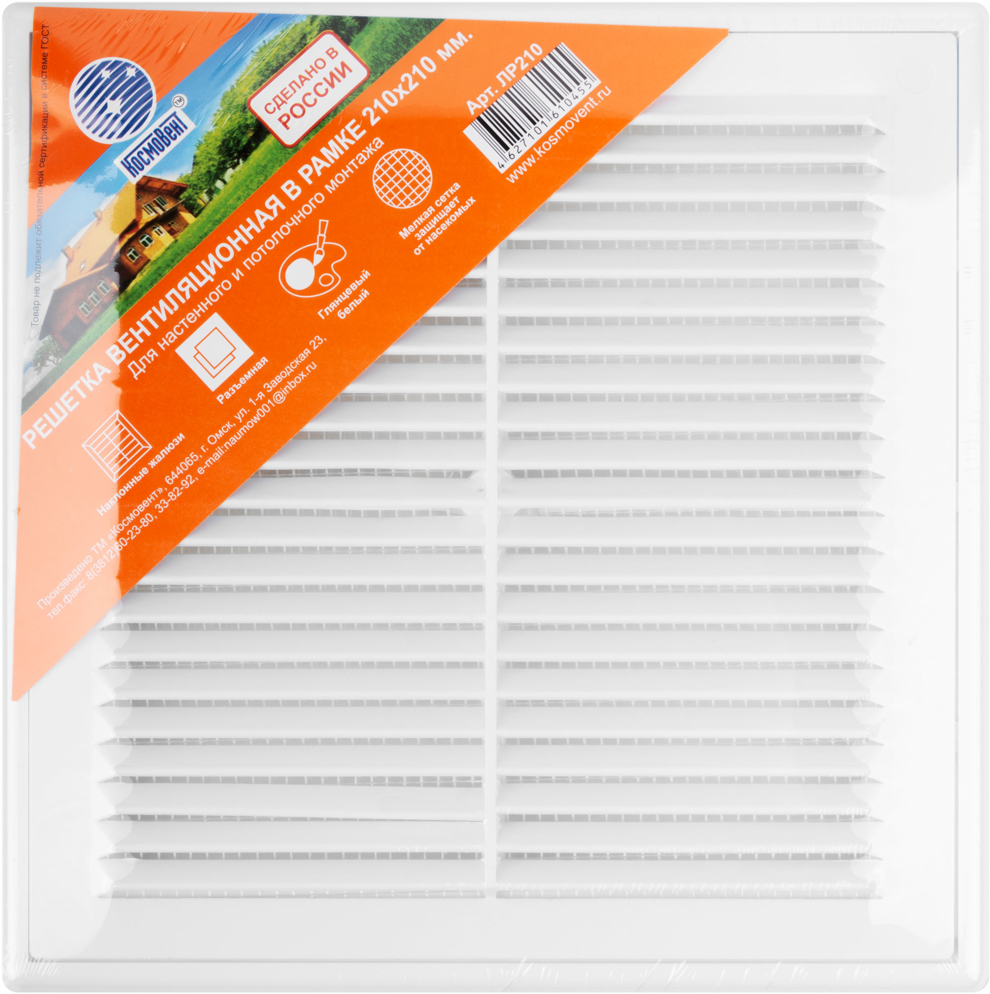 Вентиляционная решетка, пластиковая, 210 х 210 мм, съемная, с сеткой