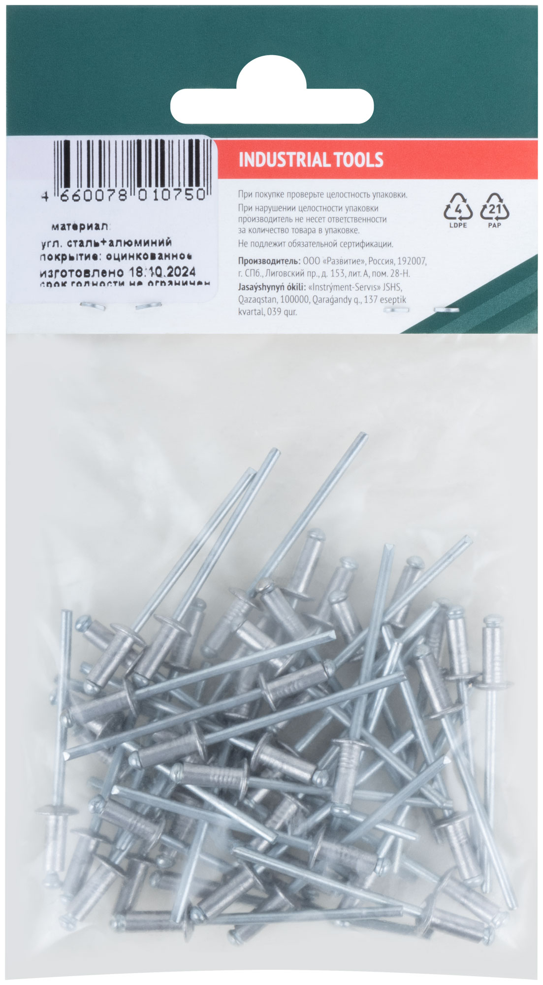 Фасовка 50 шт. Материал: алюминий. Упаковка: п/э пакет с подвесом.