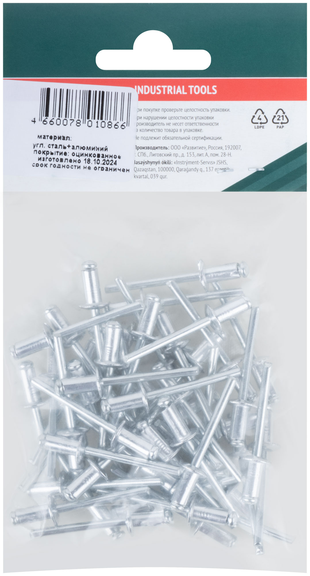 Заклепки мелкая фасовка, 50 шт., 4.8 х 10 мм