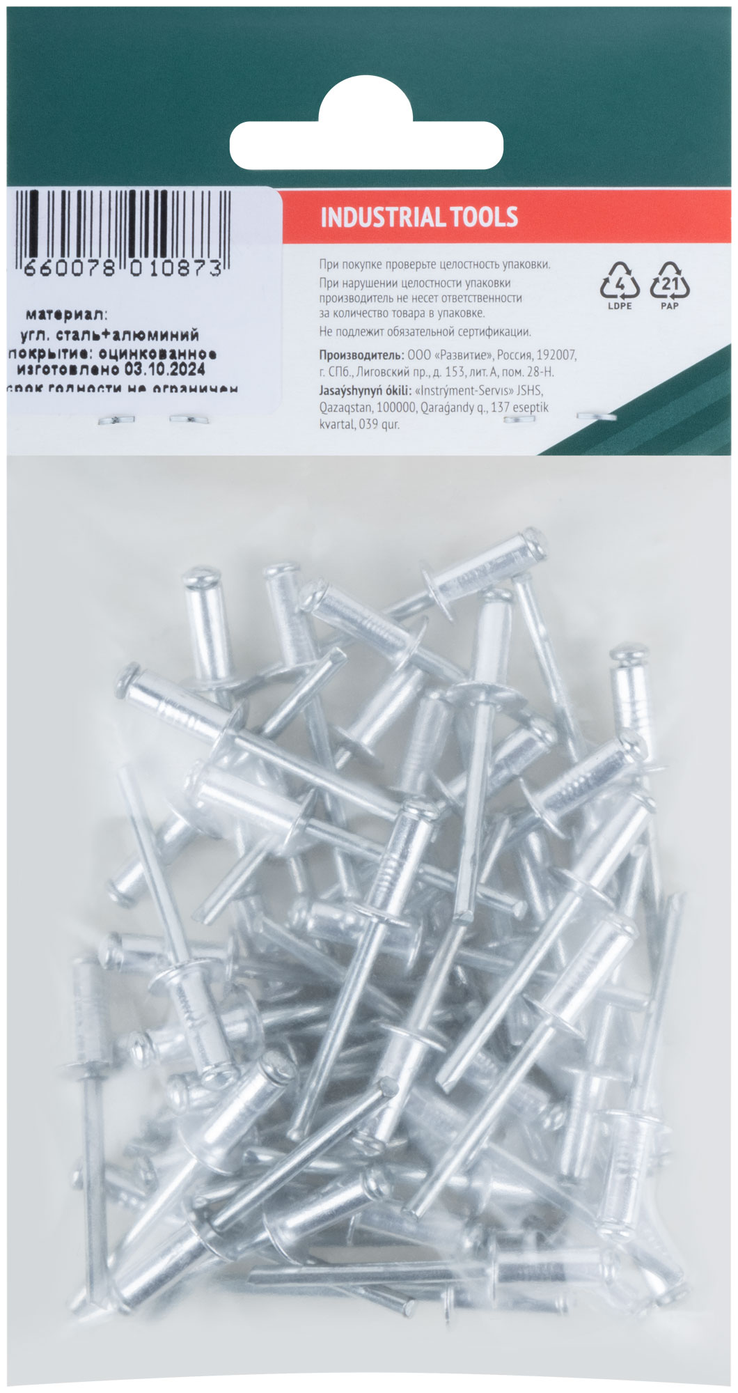 Заклепки мелкая фасовка, 50 шт., 4.8 х 12 мм