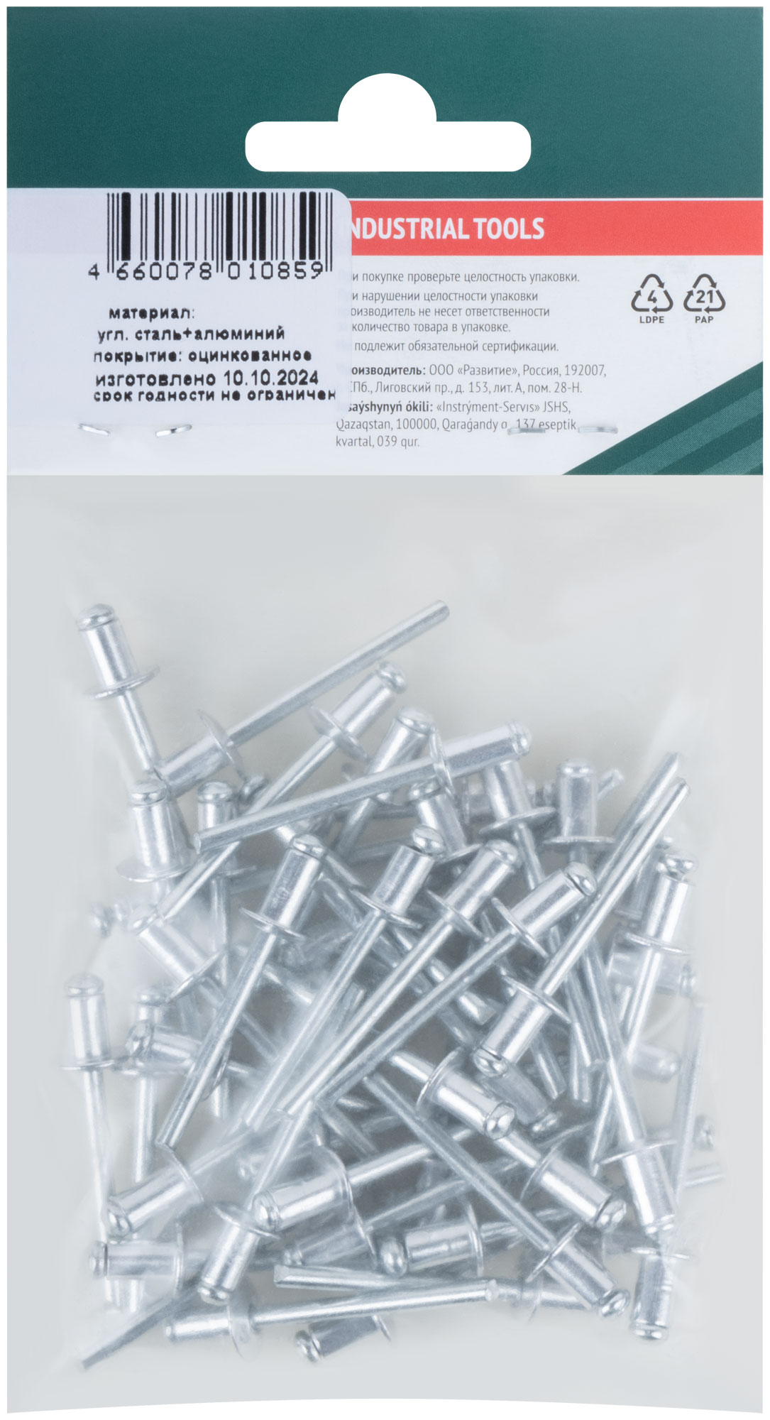 Заклепки мелкая фасовка, 50 шт., 4.8 х 8 мм