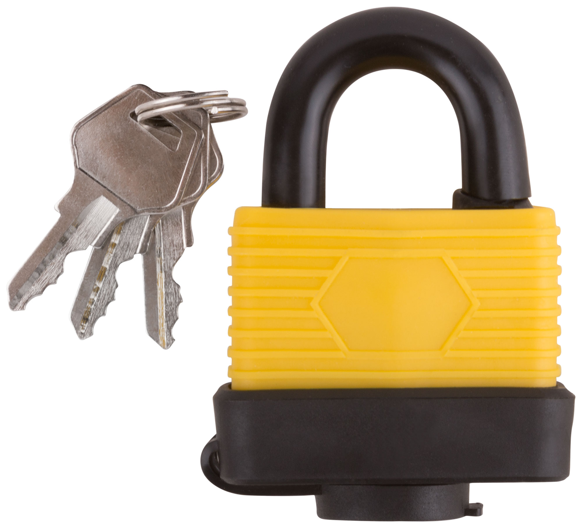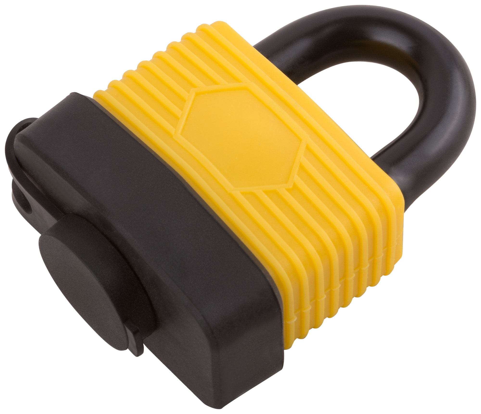 Всепогодный. Автоматическое запирание. Материал: инструментальная сталь, пластик.3 ключа. Пластиковый чехол на корпусе и специальная заглушка отверстия для ключа предохраняет замок от ржавчины. Упаковка: блистер.