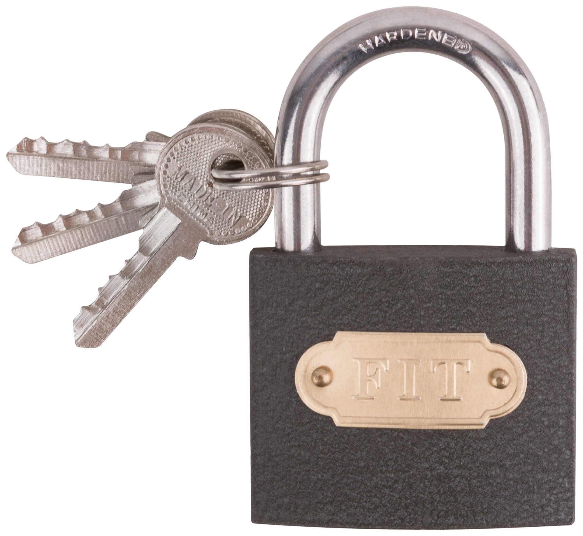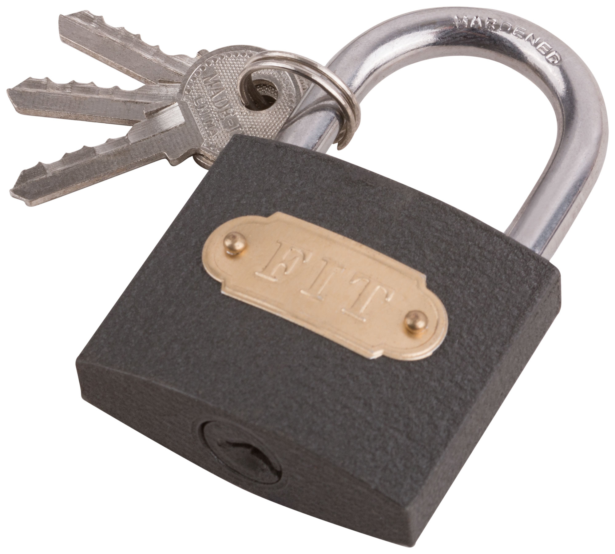 3 ключа. Автоматическое запирание. Материал: корпус из инструментальной стали, дужка из закаленной инструментальной стали. Упаковка: блистер.