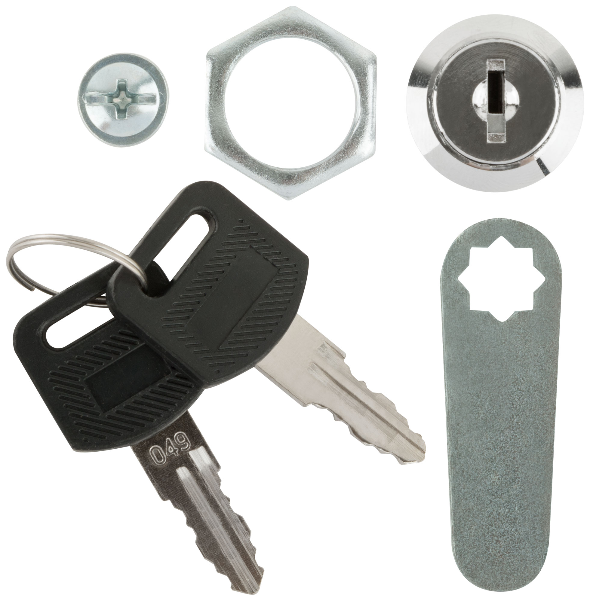 Замок врезной, почтовый. Длина врезной части 16 мм, диаметр 18 мм. 2 ключа. Упаковка: картонная коробка.