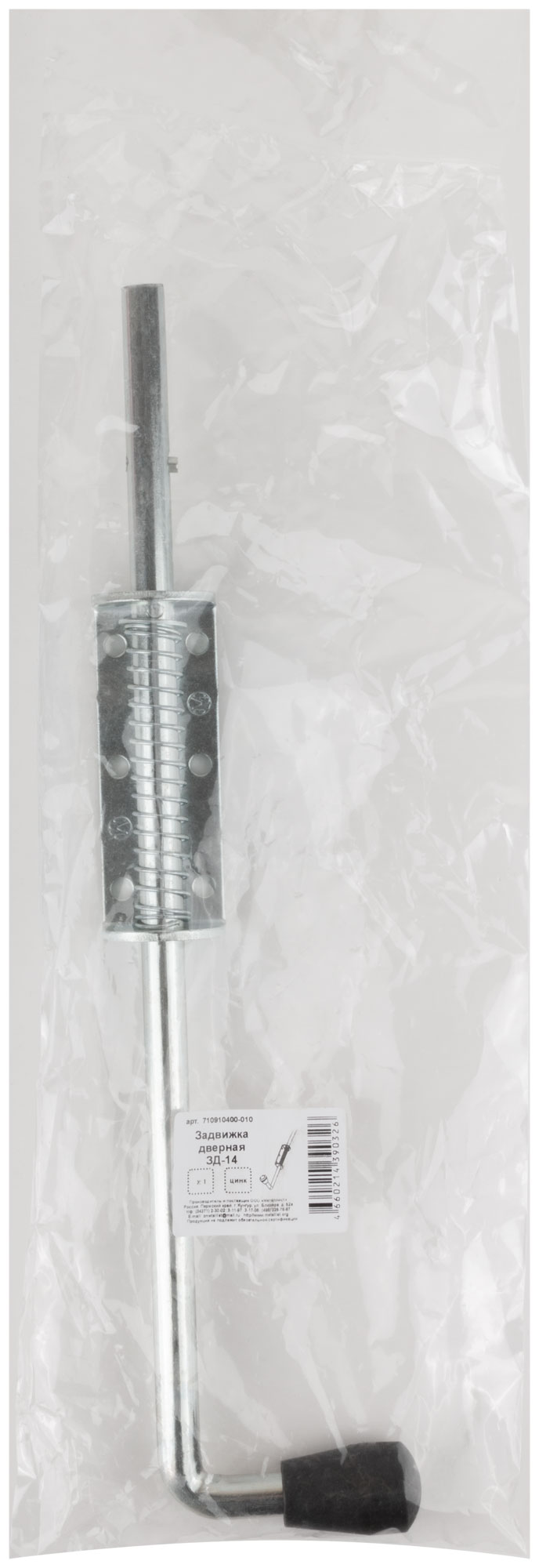 Засов пружинный накладной, круглый ригель, 400 мм