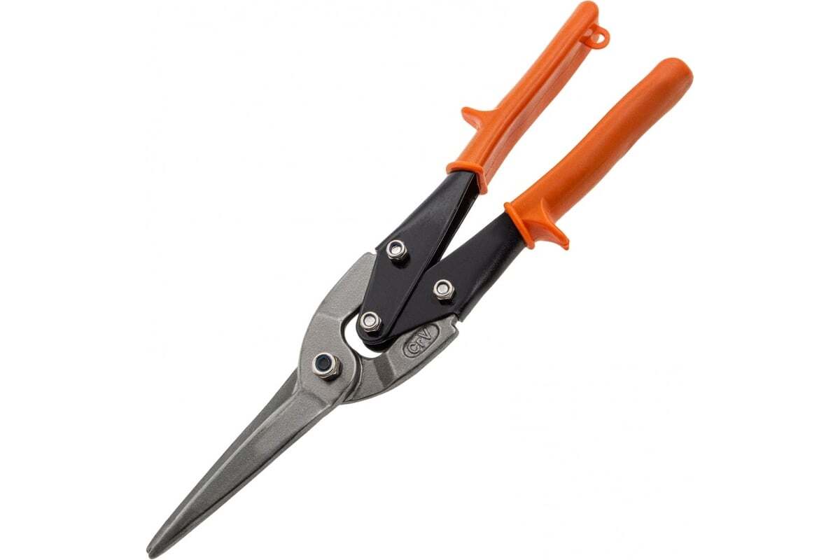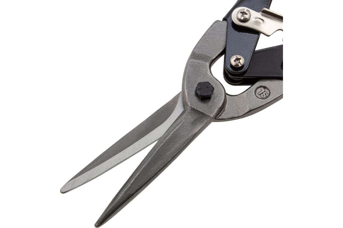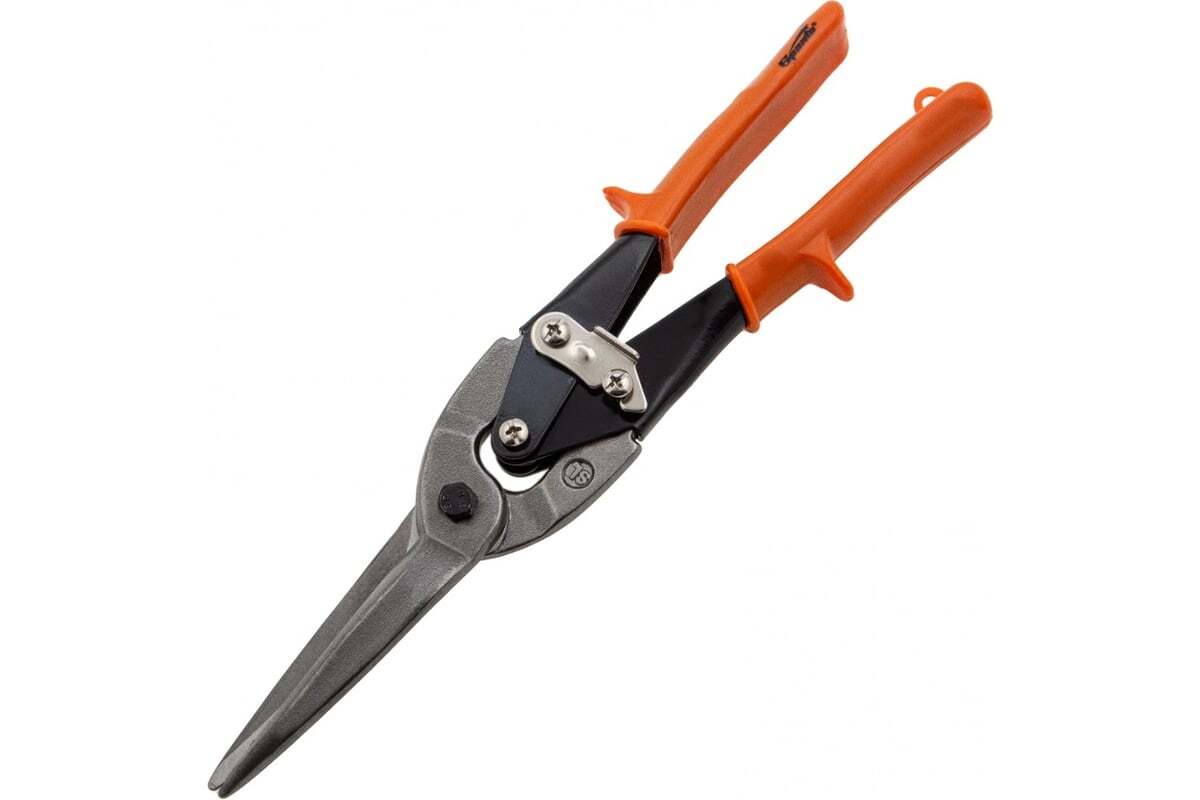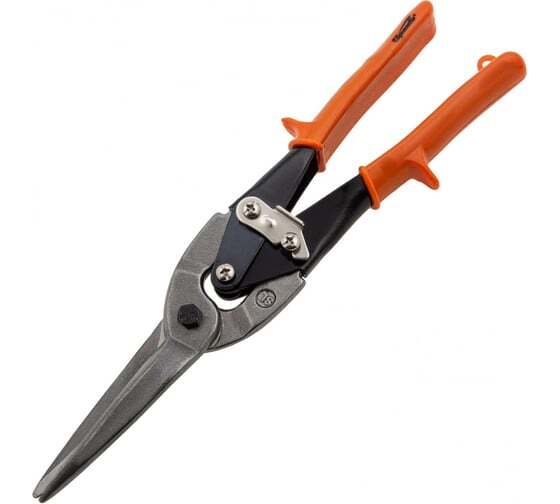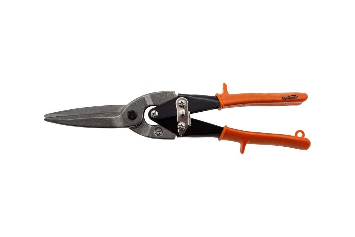 Ножницы по металлу SPARTA, удлиненные, 290 мм, пряморежущие, обрезиненные рукоятки 783165 предназначены для работ по листовому металлу толщиной до 0,8 мм. Удлиненная рабочая часть позволяет быстрее справляться с поставленными задачами. Инструмент оптимально подходит для бытового применения. Лезвия изготовлены из углеродистой стали и покрыты маслом, режущие кромки закалены до необходимой твердости. На режущих кромках предусмотрены специальные насечки, препятствующие выскальзыванию разрезаемого материала. Обрезиненные рукоятки с упорами для пальцев не выскальзывают из ладони. Специальный замок позволяет заблокировать ножницы в закрытом положении при хранении и транспортировке.