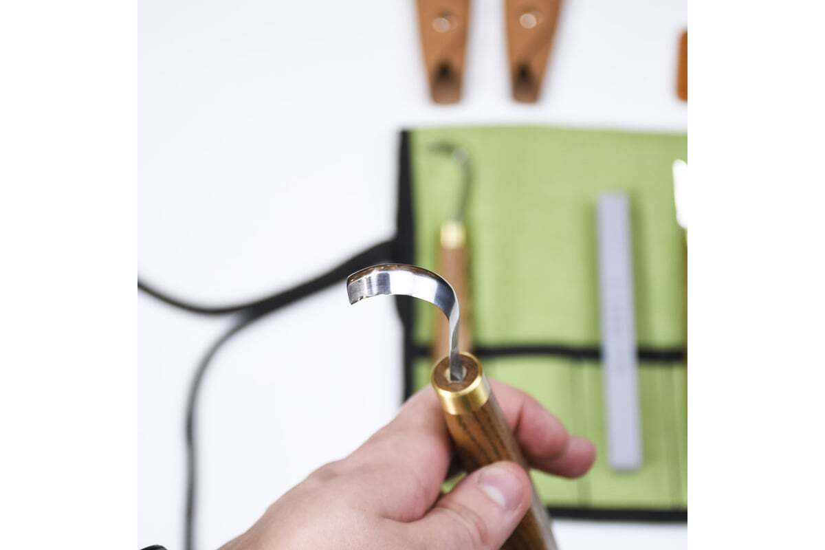 Ложкорезный резчицкий набор N14, 3 ножа + заточной абразив ПЕТРОГРАДЪ М00016440 для начинающего резчика по дереву. Прекрасно подойдет для изготовления деревянной посуды: деревянных ложек, кукс, небольших тарелок. Инструменты выполнены из высокоуглеродистой стали и имеют рукояти из клёна покрыты маслом. В наборе весь инструмент ПЕТРОГРАДЪ заточен и готов к работе.