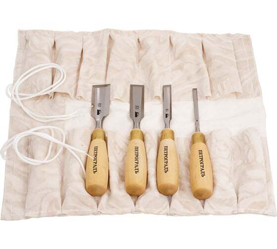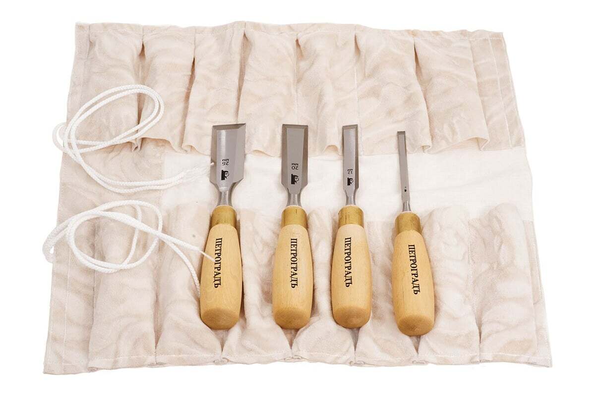Набор стамесок 6,12,20,26 мм (прямая РК, короткие, 4 штуки в сумке-скрутке) Петроградъ М00012820 применяется для работ с древесиной. Прочная сталь обеспечивает длительный срок службы и высокую эффективность за счет твердости 60 HRC.