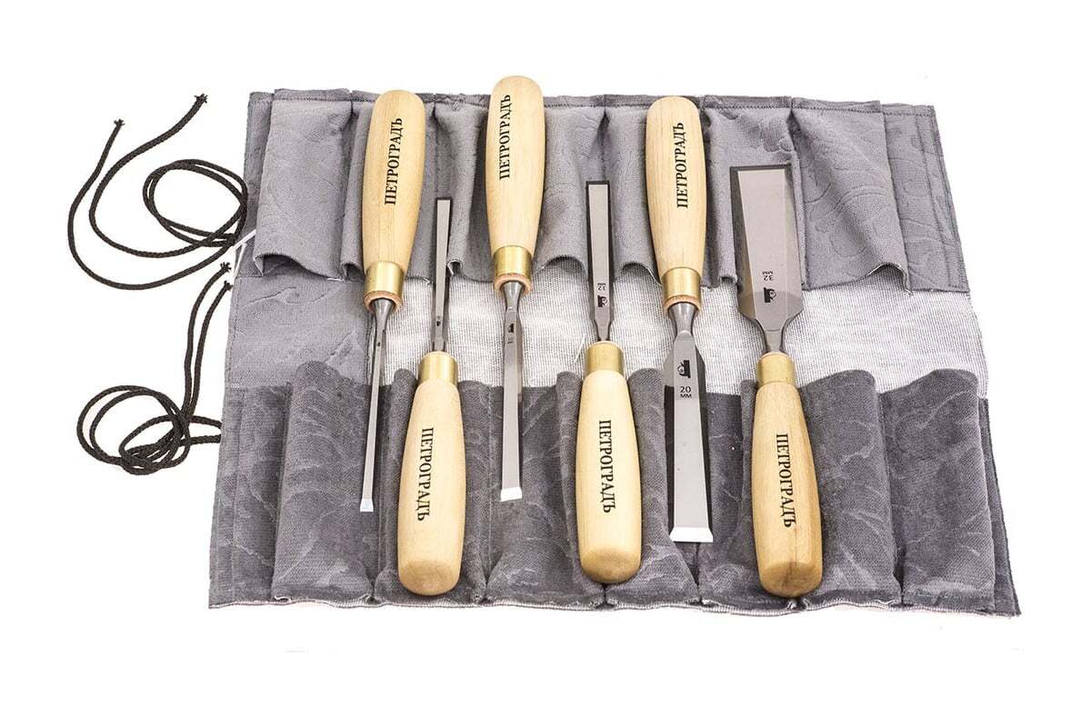 Набор стамесок 6,8,10,12,20,32 мм (прямая РК, 6 штук, в сумке-скрутке) Петроградъ М00012815 используется для работы с древесиной. Скошенные края полотна обеспечивают удобный рез в сложных условиях, например, при вытачивании соединения "Ласточкин хвост".