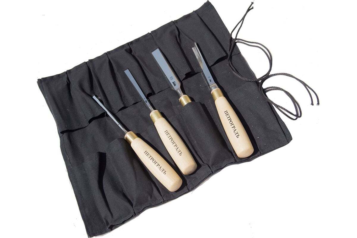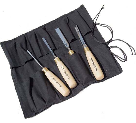 Набор стамесок, N10, 4 штуки ПЕТРОГРАДЪ М00016128 подойдет для работы с любыми изделиями из древесины.